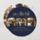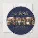 Elegante marinho azul e ouro, 4 cartões salve a data de fotos com um moderno título de roteiro de folha de ouro falso. Personalize facilmente este casamento azul marinho, salve a data com suas imagens e detalhes do casamento, incluindo um site de casamento.