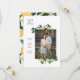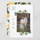 Nosso casamento com limão chiffon salve a data cartão com fotos captura a sofisticação e elegância do design com a nossa limoneira original pintada à mão com flores amarelas, flores e folhagem de folha na parte de trás do cartão para salvar a data. As negras negras dos citros são combinadas com verduras de jade profundas para criar este novo design de casamento. Possui uma combinação de caligrafia florescente e uma bela tipografia serifônica projetada em um layout limpo mínimo e moderno. Todos os florais e trabalho de arte são meticulosamente pintados à mão por nós, para criar nossos designs de casamento memoráveis. Personalize o texto, a fonte e as cores de fundo para se adequarem às suas preferências de design.