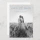 Moderno e elegante salve o cartão de data com um design azul e branco minimalista empoeirado. Personalize com seus detalhes de casamento com a fácil edição de modelo com uma fonte elegante de script e fonte de serifa elegante. Substitua a foto do cheio na frente por sua, com a opção de remover os filtros preto e branco. Em seguida, substitua a foto de trás pela sua e atualize o URL do seu site de casamento. Verifique os itens correspondentes na coleção "Modern Elegant".
