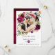 Cartão de foto de casamento floral boho com flores de peônia e anêmona, folhagens e penas em tons de ameixa bordô e rosa rosado personalizável de acordo com suas especificações.