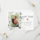 Este design boho elegante apresenta folhagens exuberantes com um toque do trópico na forma de um lindo buquê floral ao redor da sua foto incrível. Personalize facilmente com detalhes importantes de sua escolha. Tema de casamento perfeito para todas as estações.