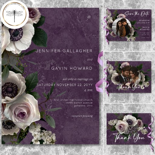 Reserve A Data Foto De Casamento Floral Moderno Plum Purple Elega