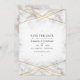 Convite de casamento com textura de mármore e moldura geométrica dourada e verso de mármore com folha dourada.