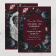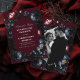 Coloque a palco de um evento assombrosamente elegante com este gótico Salvar as Datas. Este luxuoso casamento floral salva os cartões de data... com um buquê de peões negros e vermelhos e bagas azuis contra um fundo vermelho. O fundo é um lugar para a sua foto. É perfeito para uma celebração dramática e inesquecível. Eles são ideais para amantes do romance escuro e do atrativo do eterno.