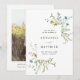 Este cartão elegante de salvar a data do casamento apresenta flores silvestres pintadas à mão em aquarela em amarelo manteiga, verde sage, verde poeirento e azul claro com uma foto e mais informações no verso. Para uma personalização mais avançada deste design, por favor clique no BOTÃO FERRAMENTA DE DESIGN AZUL acima! Itens correspondentes também estão disponíveis.