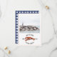 Um casamento náutico rústico, exceto a data com a ilustração de uma lagosta com fotografia personalizada à frente. O dorso é gingham azul e branco.