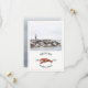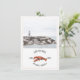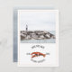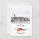 Um convite de casamento náutico rústico com ilustração de uma lagosta vermelha e foto personalizada na frente. O verso tem um design inspirado em aquarela na cor chambray.
