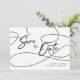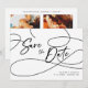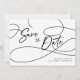 Diga aos seus entes queridos para salvar a data do seu casamento com este cartão de "Salve a Data" minimalista moderno preto e branco com uma caligrafia elegante "Salve a Data" e duas fotos personalizáveis no verso. Este cartão é perfeito se você deseja simplicidade misturada com elegância.