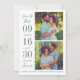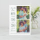 Casamento moderno e na moda guarde os cartões de anúncio de data com duas fotos quadradas de noivado com um design tipográfico que inclui números ousados e elegantes de datas de casamento com um simples monograma dos nomes de noiva e noivo. Acentuado com Forever no texto do script. Esquema rico de esmeraldas / verde florestal e branco.