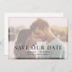 Cartões salve a data elegantes e modernos, perfeitos para anunciar sua data de casamento. Layout de fotos de cheio com um desvanecimento elegante sobre a imagem. Salve a data" foi lindamente desenhado o "O" em nossa transformação para parecer um anel de casamento. Personalize com seus nomes, data e local.