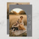 O design moderno e minimalista apresenta uma foto de quadro arquitetado em um fundo de cinza com um script de caligrafia manuscrito fino e uma tela de 2 fotos. Personalize facilmente suas informações importantes junto com suas fotos favoritas na frente e no verso. Ideal para qualquer tema moderno de casamento.