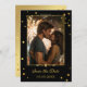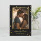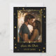 Elegante Salve o cartão de data com sua própria foto emoldurada por um design festivo com confete em ouro e preto. Um modelo de código QR é adicionado para sua conveniência.