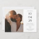 Um cartão moderno e minimalista com sua data especial, fotos e detalhes de casamento, em tipografia clássica, em chic. Projetado por Thisnotme©