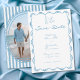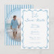 Celebre o seu amor com este caprichoso design de cartão de "save the date" para fotos de casamento, escrito e desenhado à mão em azul. Com uma delicada moldura floral e charmosos detalhes de laço desenhados à mão, é perfeito para uma romântica cerimônia de casamento no jardim. Esta estética elegante e inspirada em coquetes oferece um visual atemporal para a sua celebração única. Criado por Simply Farmhouse Press.