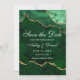 Cartão de Save The Date de Geodo de Ágata Mármore Verde Esmeralda e Dourado em Aquarela Moderna e Elegante - Parte de Trás da Foto