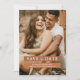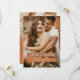 Cartões elegantes de save the date de casamento boho com foto do noivo e noiva, caixas monocromáticas em tons terrosos com um modelo de texto editável. No verso há um fundo terracota com folhas de palmeira secas em aquarela no deserto, e grama pampas da moda.