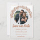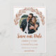Esta foto da Garland Salve o Anúncio de data vem com um simples design de texto, uma elegante granja foliar em uma caixa esboçada moderna esperando sua foto e seus detalhes de casamento para personalizar contra um fundo de cinza leve.