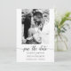 Casamento preto-e-branco salve os cartões de data que mostram sua foto e seus detalhes em carta chic na frente e mais detalhes do casamento no verso. Certifique-se de verificar seu pedido duas vezes antes de adicioná-lo ao seu carrinho, pois o que você vê na tela é o que será impresso. Mais designs na nossa loja.