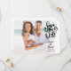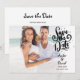 Este cartão de salvamento de data com foto de roteiro moderno apresenta a sua foto e um aviso de salvamento de data em letra acima dos seus nomes, data e local. O verso tem detalhes adicionais de salvamento de data, incluindo o site do seu casamento. Desenhado por Thisisnotme©