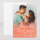 Este divertido Salvar Data de Casamento apresenta um gradiente de cor pêssego com uma tipografia de roteiro "O Amor Está No Ar" bonita. Fácil de personalizar ~ basta usar o botão PERSONALIZAR para adicionar seu texto e sua foto favorita! Vem em 13 cores. Para perguntas ou pedidos personalizados, envie um e-mail para: cheryl@cheryldanielsart.com. Design original "Love Mist" por Cheryl Daniels © 2014.