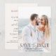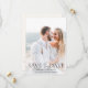 Cartão elegante e moderno de Salvar a Data do casamento com uma foto do casal noivo na frente e arte floral linear junto com as suas informações no verso. Inclui espaço para adicionar um endereço para o site do seu casamento.