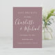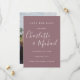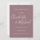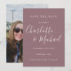 Apresentando nomes de estilo de assinatura, este cartão elegante de salvamento de mauve pode ser personalizado com suas informações especiais sobre o dia do casamento em tipografia quic e sua foto especial no verso. Projetado por Thisnotme©