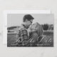 Anuncie suas núpcias em estilo com nossos cartões salve a data de script de caligrafia branca. O elegante salvamento das datas mostra sua foto horizontal do noivado com "Salvar a Data" em um script de caligrafia branco. Personalize a frente da foto e salve a data adicionando seus nomes, a data do casamento e a cidade/estado. A placa se reverte para exibir um padrão de folhagem branco com um fundo arrojado ou cor de sua escolha.