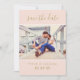 Basta um casamento de dois lados com na moda, para salvar os cartões de aviso de data incluem duas fotos de noivado e um texto personalizado moderno. Personalize o texto da modelo da placa na frente e na parte traseira da placa para o seu grande dia. O fundo cor-de-rosa pincelado e a cor antiga do texto dourado podem ser personalizados para coordenar com o seu esquema de cor de casamento.
