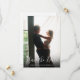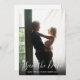 Esta simples e elegante placa save-the-date de foto de script apresenta sua foto especial sobreposta com um script para salvar a data acima de seus nomes, data e local em texto branco. Projetado por Thisnotme©