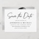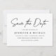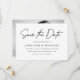 Simples salve o cartão de data com "Salvar a Data" em um script manuscrito preto com um fundo branco. Personalize o cartão de data moderno adicionando seus nomes, data do casamento, local do casamento, site do casamento, etc. O minimalista para salvar a placa de data reverte para exibir sua foto de noivado horizontal favorita.