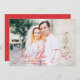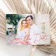 Anuncie sua data de casamento em estilo com nossos cartões salve a data modernos de fotos. O design exibe a foto do noivado horizontal com sangramento de cheio com "Salvar a Data" em uma sobreposição de script manuscrito vermelho com um gradiente branco opcional. Personalize a frente do cartão com fotos para salvar a data adicionando seus nomes, a data do casamento e a localização do casamento. O simples salvamento do cartão com fotos de data reverte para um padrão geométrico pontilhado vermelho e branco.