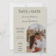 Anuncie seu dia de casamento com esta Foto Moderna do Arco Boho Salve o Anúncio de Data em bege. Salve o design de data com posicionamento de fotos no estilo de arco para o casal feliz com design de texto elegante e moderno. Adicione fotos e detalhes do casamento para personalizar.