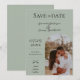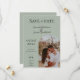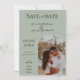 Anuncie o dia do seu casamento com esta Foto Moderna do Arco Boho Salve o Anúncio de Data em Sage Green. Salve o design de data com posicionamento de fotos no estilo de arco para o casal feliz com design de texto elegante e moderno. Adicione fotos e detalhes do casamento para personalizar.