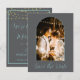 Anuncie seu dia especial com este cartão "Save the Date" elegante e sofisticado, apresentando um formato de arco estiloso e um modelo de foto personalizável. O fundo cinza oferece uma aparência sutil e clássica, enquanto a fonte de letra cursiva em azul aqua adiciona um toque refrescante de cor. Luzinhas delicadas iluminam o design, criando uma atmosfera romântica e moderna perfeita para qualquer tema de casamento. Personalize este cartão para criar um souvenir memorável para os convidados, definindo o tom perfeito para a sua celebração futura.