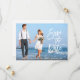 Tendência de Script de Pincel Moderno Salve o Cartão com fotos do Casal de Noivado de Data - Script Branco