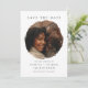 Para o casal que vai se casar e quer um casamento simples, mas contemporâneo e na moda, salve a data. Este cartão de identidade permite a inclusão de uma foto de casal, os nomes da noiva e do noivo e a data do casamento. Deixe amigos e familiares saberem salvar a data em seu calendário com um casamento simples, elegante e minimalista. A foto do casal aparecerá em um círculo irregular, em forma de moda, dando ao design uma sensação mais contemporânea.