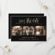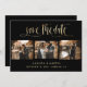 Casamento preto e ouro personalizado 3 cartões salve a data com letra moderna de caligrafia. Personalize facilmente este cartão com suas imagens e detalhes do casamento.
