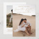 Anuncie seu próximo casamento em estilo com este código de QR moderno de script Dourado, salve o cartão de data! O design apresenta "Save the Date" (Salvar a data) exibido na cobertura de caligrafia dourada com a sua foto de noivado vertical e de sangria de cheio. Personalize a frente do minimalista, salve a data com seus nomes, data do casamento e local. A parte traseira do cartão exibe uma imagem adicional com um código QR para os convidados digitalizarem para visitar o site do seu casamento. O ouro-chic salva a data é a escolha perfeita para casamentos modernos.