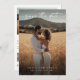 Anuncie seu dia com estilo sem esforço. Esta foto salvou a data com um retrato de sangramento de cheio na hora do ouro, uma caligrafia elegante e detalhes da serif limpa. A parte de trás adiciona uma foto coordenadora e um código QR integrado que liga os convidados diretamente ao seu site de casamento para informações de viagem e RSVP. Personalize nomes, data e local em minutos — perfeito para celebrações modernas, boho e de destino.