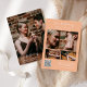 Este simples e elegante cartão de convite de data qr code exude sofisticação e beleza apresentando suas fotos favoritas e contando sua história de amor em um fundo de pêssego. Pode anunciar à sua família e amigos e salvar a data do seu próximo casamento. Essa bela salvação da data apresenta uma fonte de caligrafia e coração impressionante e belo guião escrita à mão, emparelhados com uma fonte serif clássica para uma aparência verdadeiramente eterno. É perfeito para o seu tema de casamento! Personalize os nomes, a localização e a data e substitua as fotos pela sua, o seu Código QR, o URL do site do casamento e outras informações sobre o casamento, para que você salve o cartão de aviso de data e toque pessoal. Observe que o texto e o coração "Salvar a Data" não podem ser editados, alterados ou excluídos. Você pode personalizar e personalizar o cartão postal para ajustado das necessidades do seu evento de casamento. Você pode personalizar facilmente o convite com o texto como um download digital e enviá-lo eletronicamente e compartilhá-lo com seus convidados através de mensagem de texto, email ou mídia social. Ou também pode optar por enviar/postar o convite relativo aos seus detalhes aos seus convidados. Ou você pode receber ambos — convite impresso e receber o convite em formato digital como um download instantâneo.