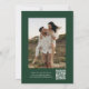 Anuncie seu próximo casamento em estilo com este código de QR verde moderno de moderno Script salve o cartão de data! O design apresenta "Save the Date" (Salvar a data) exibido na cobertura verde da caligrafia com a sua foto de noivado vertical e de sangria de cheio. Personalize a frente do minimalista, salve a data com seus nomes, data do casamento e local. A parte traseira do cartão exibe uma imagem adicional com um código QR para os convidados digitalizarem para visitar o site do seu casamento. O chic green save the date é a escolha perfeita para casamentos modernos.