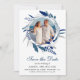 Reserve A Data Foto do Floral Floral Azul Elegante Salvar a Data
