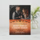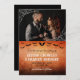 Casamento de Halloween ou gótico salve a data com uma foto de vocês dois adornada com teia de aranha impressa nos cantos, e você salva a redação da data em uma letra gótica contra um fundo laranja angustiado com morcegos voadores. Halloween salve a data com sua foto, morcegos e teia de aranha. Gótico laranja e preto salve a data personalizada com uma foto para informar seus convidados sobre seu próximo casamento de gótico.