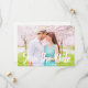 Salve a nova data escrita em tipografia em chic bold neste belo cartão com fotos noivado. Adicione sua própria fotografia de casal sangrado neste moderno minimalista Salve a Data e personalize os detalhes do casamento e o site na parte de trás desta simples carta.