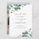 Apresentando nosso casamento minimalista e moderno Salve a Data, com um Elegante Verde Eucalyptus serene verde e branco com foto de casal. A delicada caligrafia negra acrescenta um toque de sofisticação a esse convite minimalista, fazer ser a escolha ideal para uma celebração moderna de casamento. Selecione o tipo de papel conforme desejar antes de comprar.