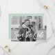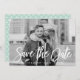 Defina o tom para o seu próximo casamento anunciando sua data com nosso Na moda Script, salve o cartão de data. O moderno save the date card apresenta uma fonte de script escrita com letra de letra com um padrão verde de menta de tendência no verso. Personalize o anúncio da data com seus nomes, data do casamento, cidade e foto de noivado para um design que certamente irá impressionar!