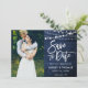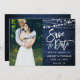 Madeira Azul Rústica, Luzes De Corda, Salvar O Cartão com fotos De Anúncio Do Noivado De Fotografia