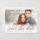 Este elegante salvamento da data apresenta um script de sombreamento em folha de ouro falso rosa com um backer listrado. Carregue sua própria foto e personalize as informações para incluir os detalhes do seu casamento.