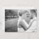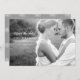 Um cartão com fotos simples e elegante para o casamento Salve os Datas. O script caligráfico formal é emparelhado com fontes serif e sans-serif modernas em branco contra uma parte mais escura da foto do noivado. Perfeito para casamentos clássicos, formais e românticos. As costas têm um elegante padrão branco e cinza também. Use a ferramenta "Personalizar" para alterar o tamanho da fonte, mover o texto e alterar a cor de fundo do padrão no backer.