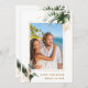 Esta foto de casamento salva a data do convite apresenta a monstera da aquarela, folhas de palmeiras, folhas de bananeiras, folhas tropicais exóticas e folhas de ouro falsas com uma falso estrutura de retângulo dourado. É perfeito para um casamento tropical, praia, verão ou destino.